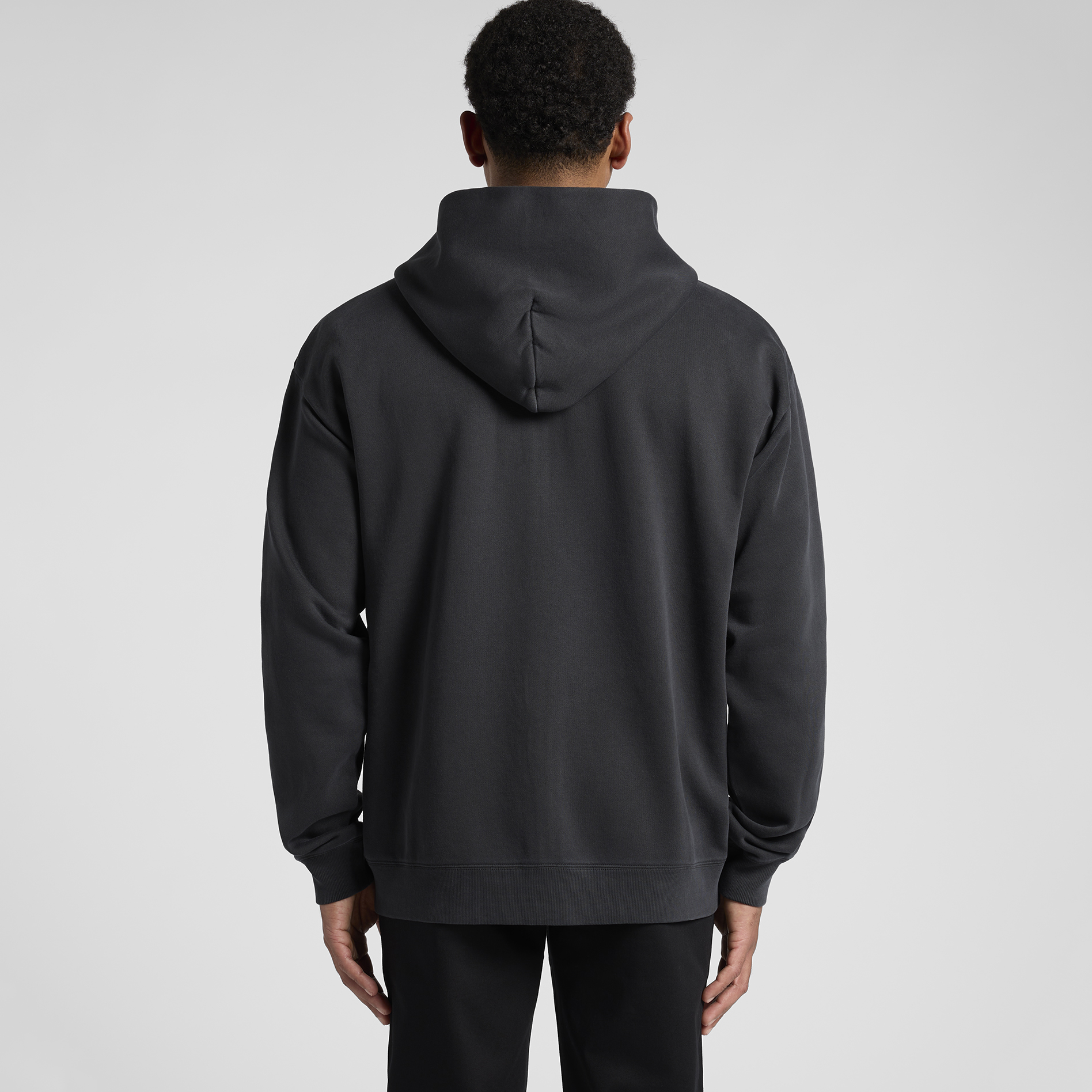 Garment dyed, zip hood, drop shoulder, kangaroo pocket, self-fabric lined hood, no drawcord, SBS two-way zip, sleeve cuff ribbing, CVC fleece, preshrunk to minimise shrinkage